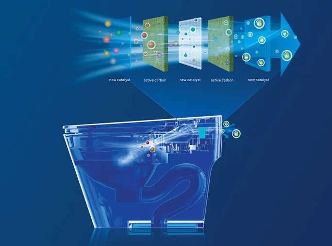 Fresh water is released instantly to give you the best bathroom experience. The Advanced Toilet Air Purifier removes airborne particles from the bathroom air — helping your bathroom smell fresher, as well as reducing allergens and improving respiratory health.